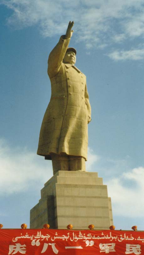 памятником Мао. Напротив большой зеленый парк. Здесь много тени. Повсюду