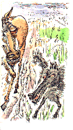 Через некоторое время раздается глухое рычание стаи, стук копыт, ржание, стон.
