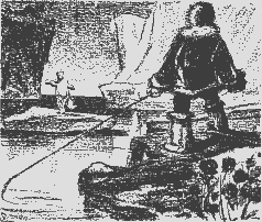 -- Весла на воду! Пошли! -- проговорил один из гребцов.