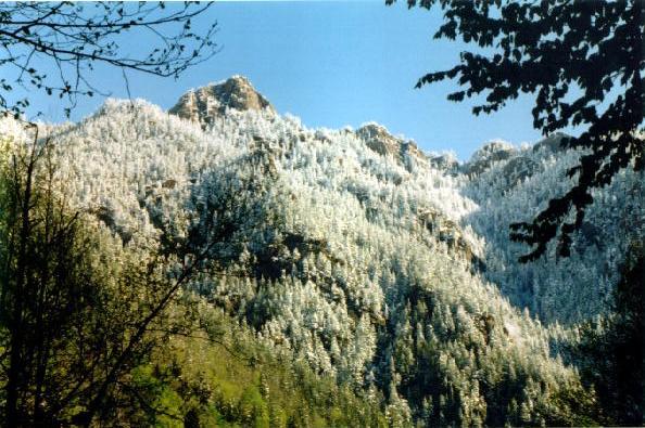 Мы прогулялись по лесной дороге на гору. Лес напоминает Новогодние открытки.