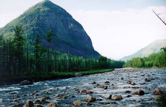Поезд прибыл на ст. Слюдянка-1 с большим опозданием в 10.00 по московскому (С.В. - по расписанию прибытие в Слюдянку в 8:30 по московскому времени, разница с Москвой +5 часов). Увы, мечта искупаться в Байкале после долгой и весьма нетрезвой дороги умерла сразу. Прибил сию мечту стоящий на станции в ожидании опаздывающего поезда заказной автобус с нервной тетей кондуктором. Автобус встречал группу горников, идущих куда-то в район Ниловой Пустыни (часть горников прилетела самолетом раньше и заказала этот автобус). Тетя кондуктор стала еще более нервной и злой, узнав, что горники предпочли подвернувшийся УАЗик. От полной депрессии ее спасли две другие подвернувшиеся группы: мы и плотовики, идущие на Китой-Онот. За дорогу до Монд запросили 70 руб. за билет и 35 руб. за багаж с человека. Расценки по тамошним условиям весьма божеские, и мы не раздумывая согласились. Слегка потормозив у автобазы, автобус ехал достаточно шустро и почти без остановок. На границе Тункинского национального парка нас остановили местные силовые органы и произвели такой вот диалог с водителем: