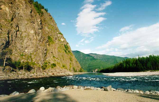 Собрались. Остановив догнавший нас УРАЛ, мы договорились с водителем на 200 руб. до Хойто-Гола и загрузились в кузов. Компания подобралась забавная. Толпа бурят разных полов и возрастов, ребята-телевизионщики из Москвы, мы и группа катамаранщиков-челябинцев, подобранная чуть позже. Среди бурят выделялись буддийский священнослужитель (почти лама!), ортодоксальный бурят-шаман (по совместительству редактор местной газеты) и продвинутый житель Орлика, имеющий дома РII и вынашивающий планы подключения к Интернет. Все взрослые пассажиры мужского пола находились в разной степени нетрезвости.