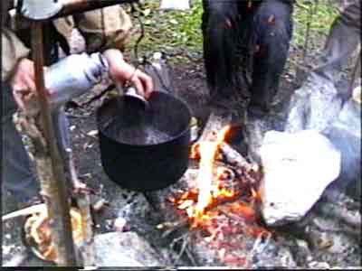 процессе готовки сломалась палка от костра и опрокинулись макароны ( что и случается всегда в
