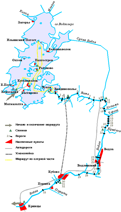 Кугонаволок - оз.Водлоозеро - р.Вама - р.Водла - пос. Водло.