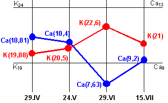 Изменения величин "K" и "Ca"