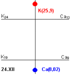 нижней горизонтали, а 24mg% "K" соответствует верхней горизонтали. Так как